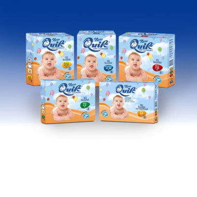 Pannolini assorbenti con chiusura elastica avvolgente e bande laterali. Disponibili in tutte le taglie.